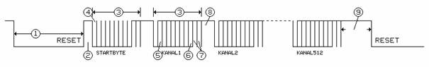 Obrázek 4.1 – Časový diagram přenosu jednoho datového paketu v protokolu DMX512
